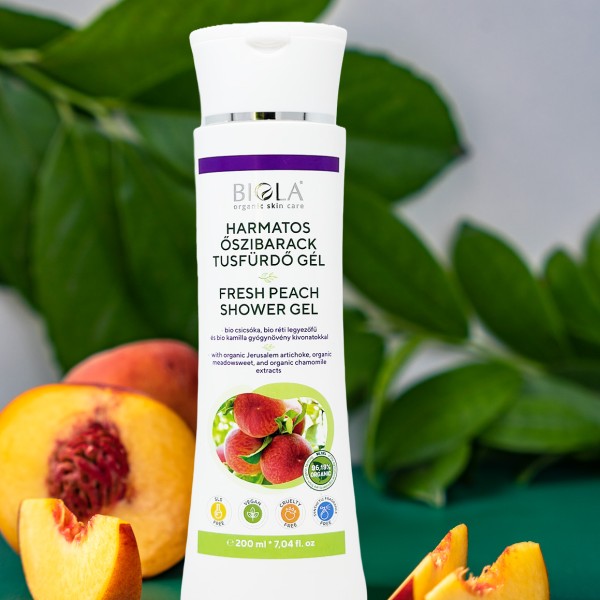 A harmatos őszibarack tusfürdő gélünk tanúsított biokozmetikum.