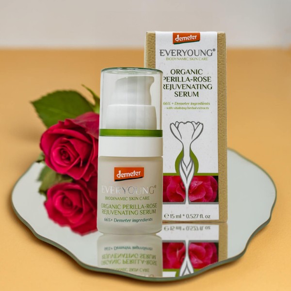 AZ EVERYOUNG BIODYNAMIC SKIN CARE - BIO PERILLA - RÓZSA REJUVENÁLÓ SZÉRUM termékünk tanúsított biodinamikus kozmetikum.