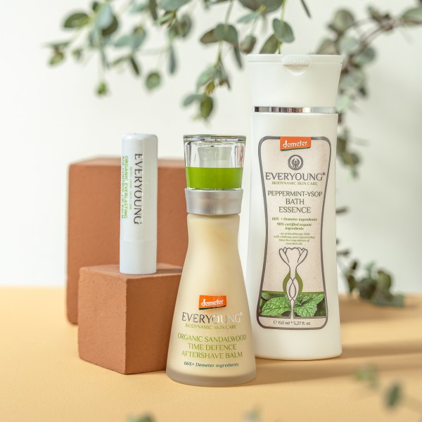 AZ EVERYOUNG FÉRFI BIODINAMIKUS AJÁNDÉKCSOMAG TARTALMA (ÉRETT, VÍZ- ÉS ZSÍRHIÁNYOS BŐRRE):
