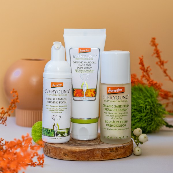 AZ EVERYOUNG BIODINAMIKUS FÉRFI AJÁNDÉKCSOMAG TARTALMA (VÍZHIÁNYOS BŐRRE):