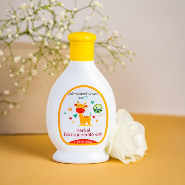 Jojoba növényi olaj, Ligetszépe növényi olaj, Tökmagolaj hatékonyan óvja és táplálja a baba bőrét.