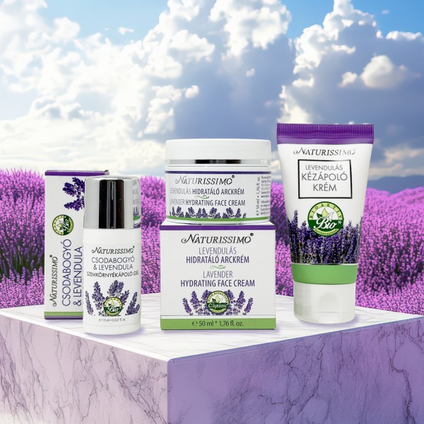A LEVENDULÁS HIDRATÁLÓ ARC-, SZEMKÖRNYÉK- ÉS KÉZÁPOLÓ AJÁNDÉKCSOMAG TARTALMA: