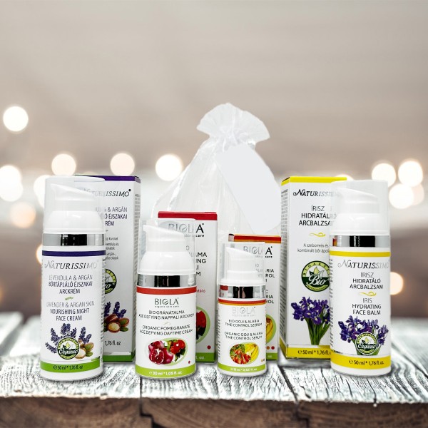 A BIOLA ÉS NATURISSIMO KOZMETIKUMOKBÓL ÁLLÓ AJÁNDÉKCSOMAG TARTALMA: