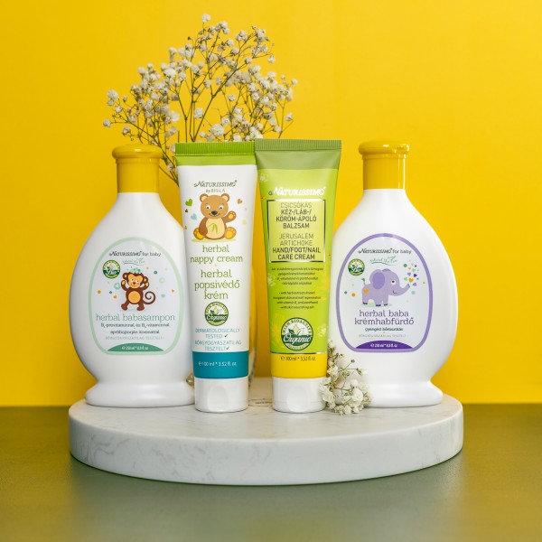 Természetes meglepetés és hasznos ajándék a kisbabák érzékeny bőrére. A Naturissimo termékcsaládunk natúr szemlélettel formulázott babakozmetikumai, bőrgyógyászatilag tesztelt és bioaktív hatóanyagaival regenerálja, hidratálja és gyengéden tisztítja a babák bőrét.